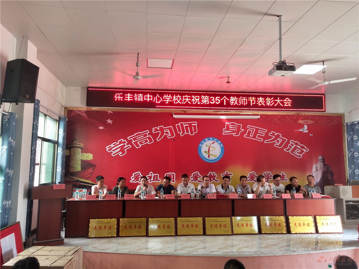 金秋九月,丹桂飘香,硕果丰美。为热烈庆祝第 35 个教师节,激励乐丰广大教师和教育工作者创先争优,献身教育事业;总结表彰教育工作先进典型,进一步在全社会弘扬尊师重教的良好风尚,促进我镇教育事业健康发展,推动教育教学工作迈上新台阶,9月8日上午,乐丰镇中心学校在阶梯教室隆重举行了庆祝第35个教师节暨表彰大会。参加大会的有中心学校全体班子成员、中小学校长、所有获得表彰的教师和教育工作者。大会由党总支副书记李虎章主持。