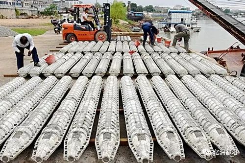 2019年9月3日,笔者见鄱阳县环东湖改造工程建设基地一角十分繁忙,施工人员趁天气晴好加班加点赶进度,看一看这是什么神器?有如悟空定海神针。师傅们告诉说,该基地专为环东湖改造工程定制水泥桩。