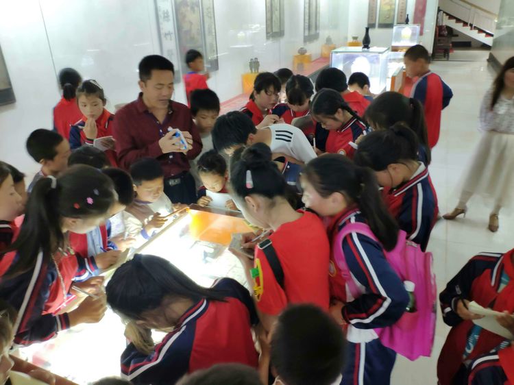 同学们跟着讲解员来到展厅,认真地听讲解员讲述着这一件件文物的来历和含义,大家听得津津有味。看!他们把讲解员围成了一圈,就足以可见他们有多入迷了。