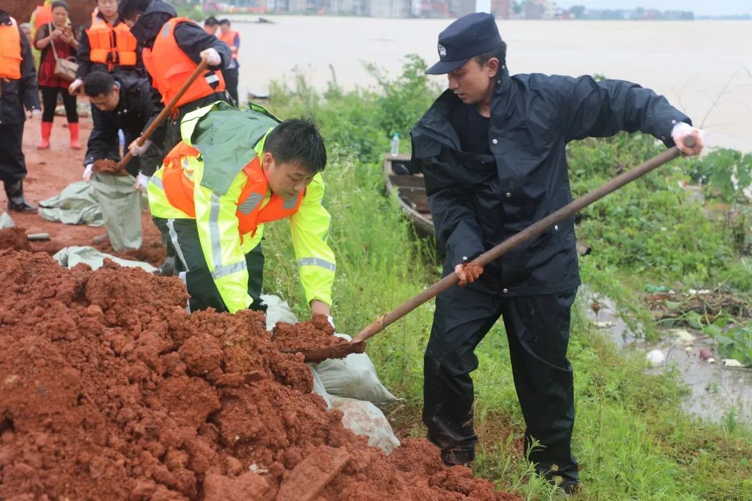 7月8日下午,在党委委员、组织委员刘国喜的带领下,鄱阳县公安局组织百余名警力,赶赴昌江圩堤开展抢险救灾工作。