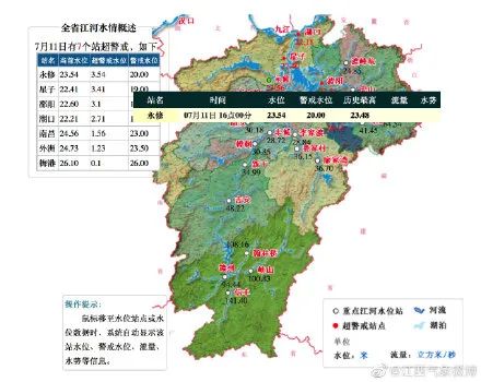 【鄱阳点距历史最高水位仅0.01米】继永修站点突破历史最高水位后,今天下午4点鄱阳站点水位达22.6米,与历史最高水位仅差0.01米(历史最高22.61米),近期防汛形势严峻,还请多多注意安全。