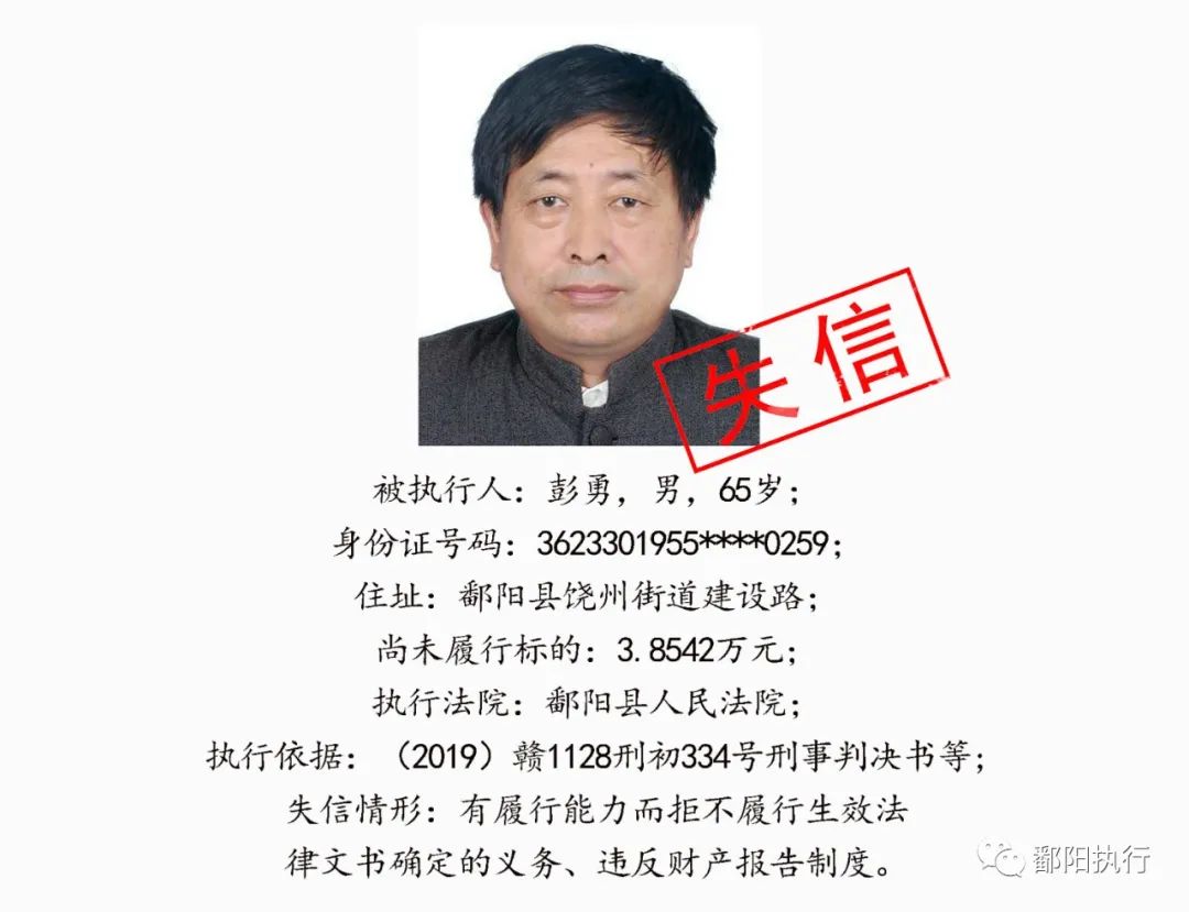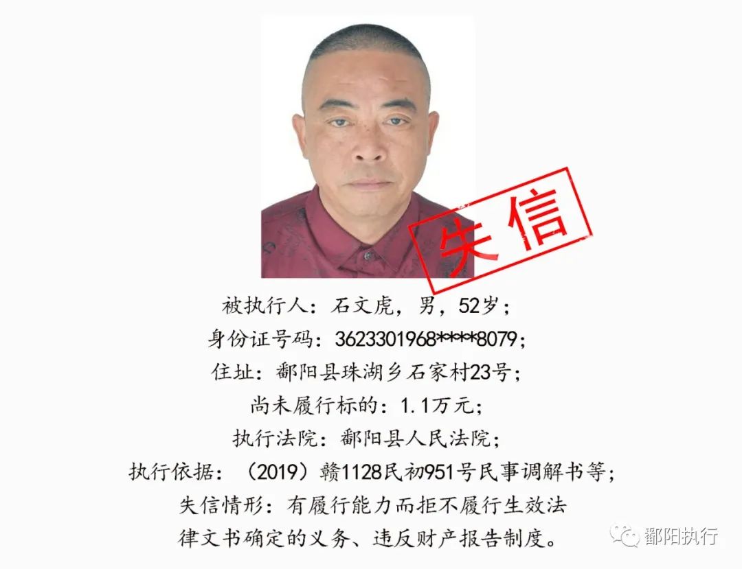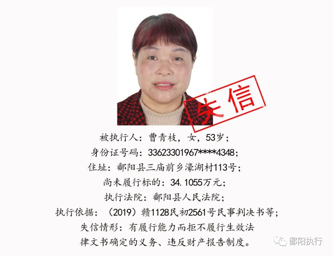 鄱阳县人民法院发布2020年第四期失信名单