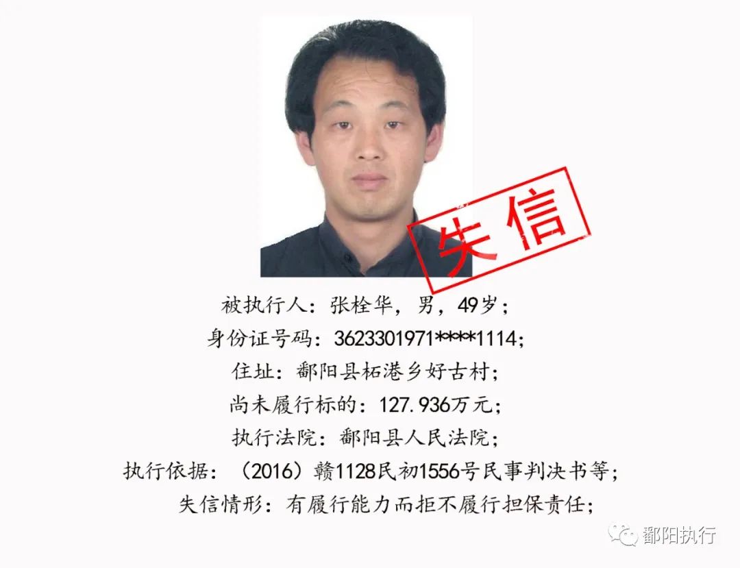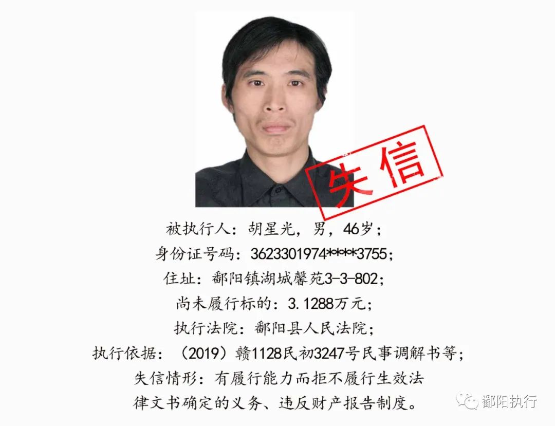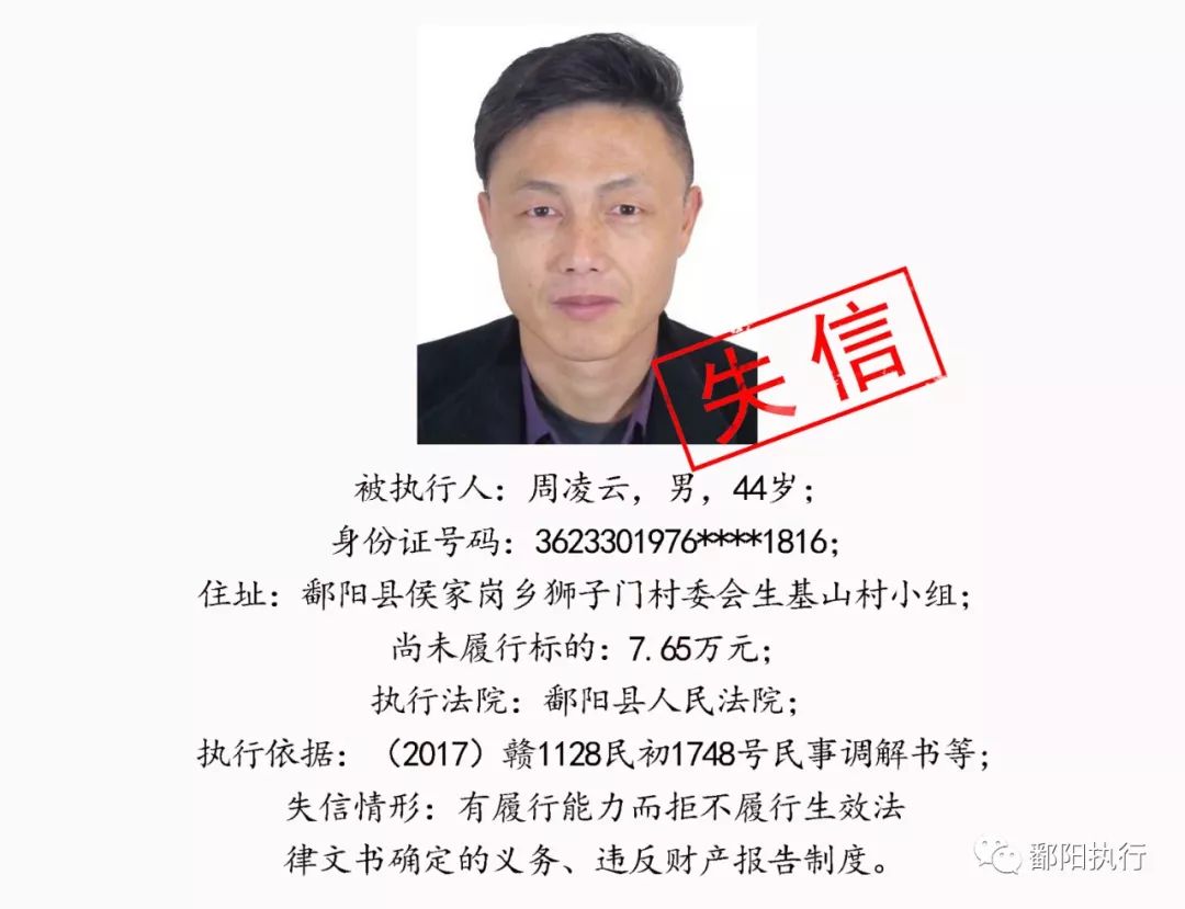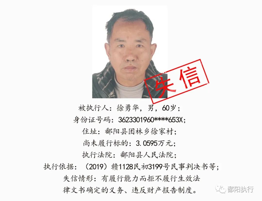 鄱阳县人民法院发布2020年第四期失信名单