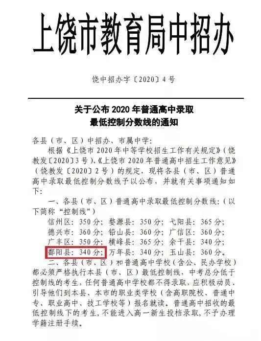 正在阅读:关于公布2020年上饶普通高中录取最低控制分数线
