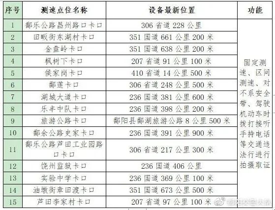 一、测速卡口限速值由原来的70公里/小时调整为60公里/ 小时