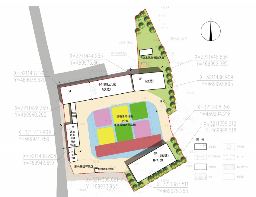 鄱阳镇中心幼儿园位于鄱阳县城北风雨山,西南方向为幼儿园主入口接南侧乡道。包括学教区、活动区,共设6个(间)、可容纳150人,在空地上拟建2层中心幼儿园。本项目总建筑面积约为1665.3平方米,幼儿园改造1121平方米。饶州街道中心幼儿园位于黄家洲村,向心南路端头以西,东湖以东,为原黄家洲小学教育用地。项目规划用地面积1779.866平方米,总建筑面积1837.99平方米,可招收6个班,150名学生。鄱阳县第五幼儿园由东湖小学改建而成,项目位于东湖大道以南,鄱阳一中入口以西,东湖以东。共设3个(间)、可容纳75人,总建筑面积约为947.34平方米,幼儿园(改造)建筑面积694.26平方米,配套用房(改造)建筑面积240.48平方米。鄱阳县第六幼儿园由芝田小学改建而成,位于鄱阳县新汽车站以北约600M,迎宾大道以东约400M,园内主入口接西侧芝田村主干道。共设6个(间)可容纳150人,拆除一部分拟建3层幼儿园,保留一部分建筑做为配套用房。本项目总建筑面积约为2065.49平方米,幼儿园(拟建)建筑面积1206.78平方米。