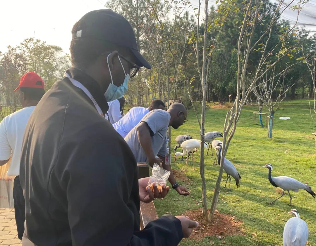 “Oh,are these all made of rice?So delicious!”在企业展厅,展出了一系列由鄱阳湖大米做成的灌芯糖、冻米糖等绿色有机食品,外国学员们边询问边品尝,连连称赞,有些可爱的学员甚至打包了一些准备带回自己的国家给亲朋好友尝尝鄱阳的味道。“通过参观,我知道了鄱阳湖是中国第一大淡水湖,这里生态资源丰富。鄱阳县独特的地理环境,再加上鄱阳湖净水沉积物湖积物的孕育,使得土壤中富含有机质,营养元素丰富。孕育出来的大米无论是外观、蒸煮还是食味品质都非常理想。我们国家一日三餐都吃大米,每年都要从美国进口大量高价米,非常希望以后能从鄱阳这进口优质大米”一位冈比亚学员把鄱阳湖米业企业负责人的联系方式认真记好。 在鄱阳湖米业初步了解鄱阳后,学员们来到了访问的第二站——已经脱贫摘帽的原深度贫困村芦田乡孤山村。“脱贫致富把歌唱嘞……”一进村,学员们便被村里正在举办的丰收节歌舞表演吸引住眼球,纷纷拿出手机和ipad记录这一美好时刻。来自加纳的学员在舞台下边拍边跟着音乐和台上的表演阿姨一起舞动身躯,这一幕艺术无国界的画面令人动容。 “欢迎你们来我家参观!”在脱贫农户聂文来家中,村里的扶贫第一书记给学员们讲述了聂文来是如何在扶贫产业、就业政策及当地帮扶干部的支持帮助下,办理政府贴息小额贷款,从一个贫困农户家庭成长为孤山村远近闻名的“夫妻档”手工皮鞋铺老板的故事。在听到他经营的两家皮鞋店现在年纯收入可达7万多元,全家真正实现了高质量脱贫,正向小康水平迈进时,学员们自发地鼓掌欢呼并由衷为其感到高兴。“我看到了扶贫政策对贫困户实实在在的帮助,真心为鄱阳的脱贫攻坚点赞!” “老板,给我找一双43码的鞋”“我也来一双,这双多少钱?”……学员们在参观聂文来的皮鞋店时,踊跃采购了千余元的鞋制品数十双。小小的参观会变身扶贫展销会,不少外国友人甚至希望通过邮寄的方式购买现在缺码的鞋。“鞋子做工好,买了好鞋又能为鄱阳的脱贫攻坚做点贡献,何乐而不为呢?”一口气买了两双鞋的缅甸学员说道。 从脱贫农户聂文来家出来后,学员们随即走进了幸福食堂。幸福食堂整洁有序,老人家有的在看书,有的在打牌,有的在艾灸,其乐融融,老有所乐老有所养。有个学员看到乡村医生在施展艾灸,表现出浓厚的兴趣,上前亲身体验了一番,并感叹“古老神奇的中国艾灸,我感觉整个人都在放松、轻飘飘的,我回国后一定要告诉伙伴们,太不可思议了”;有个学员看到老人们打扑克,便坐在老人身边观摩,并同老人们展开了一场别开生面、接地气的交流。“你来中国多久了,喜欢鄱阳吗”“我来中国两个多月了,我非常喜欢鄱阳,这里环境好,物产丰富,人们生活的很幸福,有机会我会带更多的同胞来这里体验”。 依依不舍的告别孤山村,中午稍作休整后,下午2点30分学员们前往鄱阳湖国家湿地公园。一路乘船一路看,一路拍照一路议,学员们亲眼目睹了鄱阳湖清澈的水质和景色秀美的风光。在得知鄱阳湖正在进行的十年退捕禁捕政策后,学员们对我国政府为保护绿色生态环境及水资源修复作出的努力表示敬佩。在候鸟乐园,学员们参观并喂食了省鸟白鹤、灰羽鹤、鸿雁、天鹅等,人鸟同欢。 “我们通过建设环湖建设生态渔村与污水处理设施保护鄱阳湖生态环境。每年11月至次年3月,全世界98%的珍稀候鸟种群会相继来此越冬,繁衍生息。这里有些鸟是受伤掉下来以后被附近的村民送到我们这救助,在这休养了一段时间后‘爱’上了这里的环境便没有再离开了。保护鸟类就是保护人类自己,鸟类的家园,其实也是我们人类的家园”。来自纳米比亚的女士Maggie对湿地公园的生态环境保护举措竖起了大拇指。
