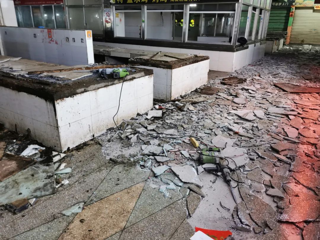 随着我县城市发展,陈旧的永兴农贸市场在消防设施、燃气、电源线路安全,以及监控设施、内部环境等都跟不上现代化管理标准,农贸市场已经不能满足人民群众日益增长的需求。记者在该市场看到,菜场内部原先的摊位已基本撤离完毕,施工人员正对各摊位进行拆除,各主要入口也相继放置了围挡。管理方为方便市民买菜,在市场外侧设置了临时菜场。