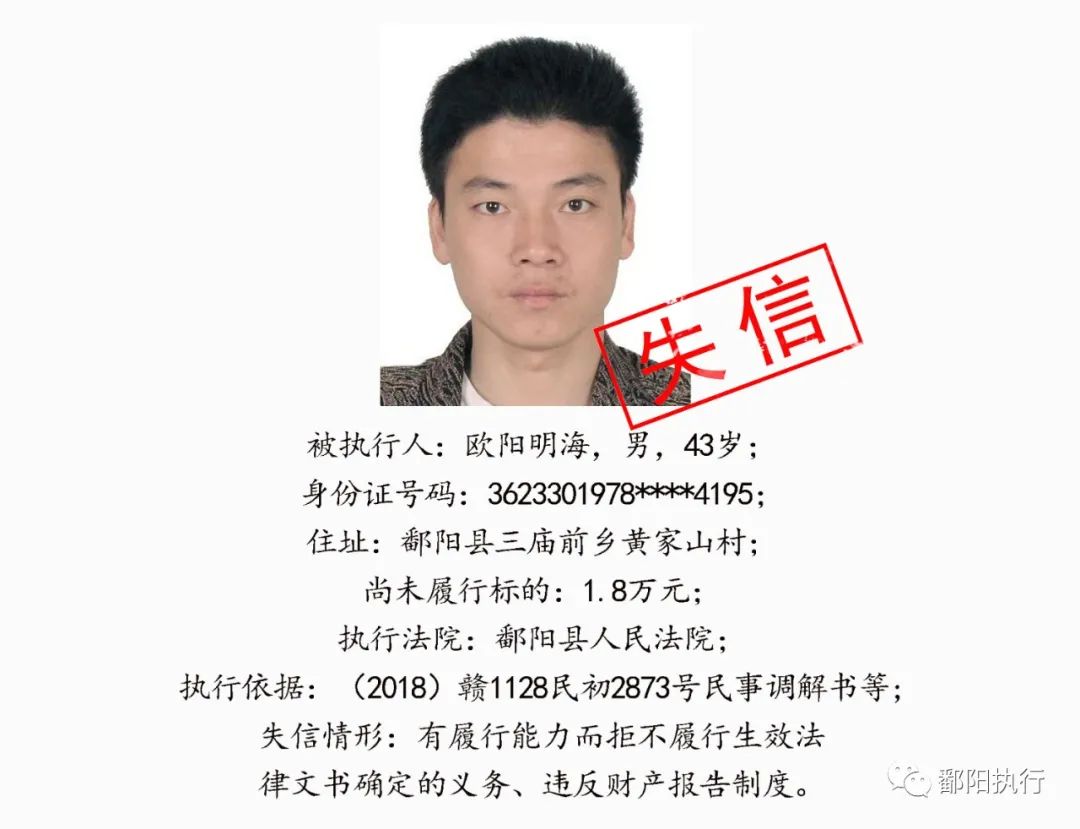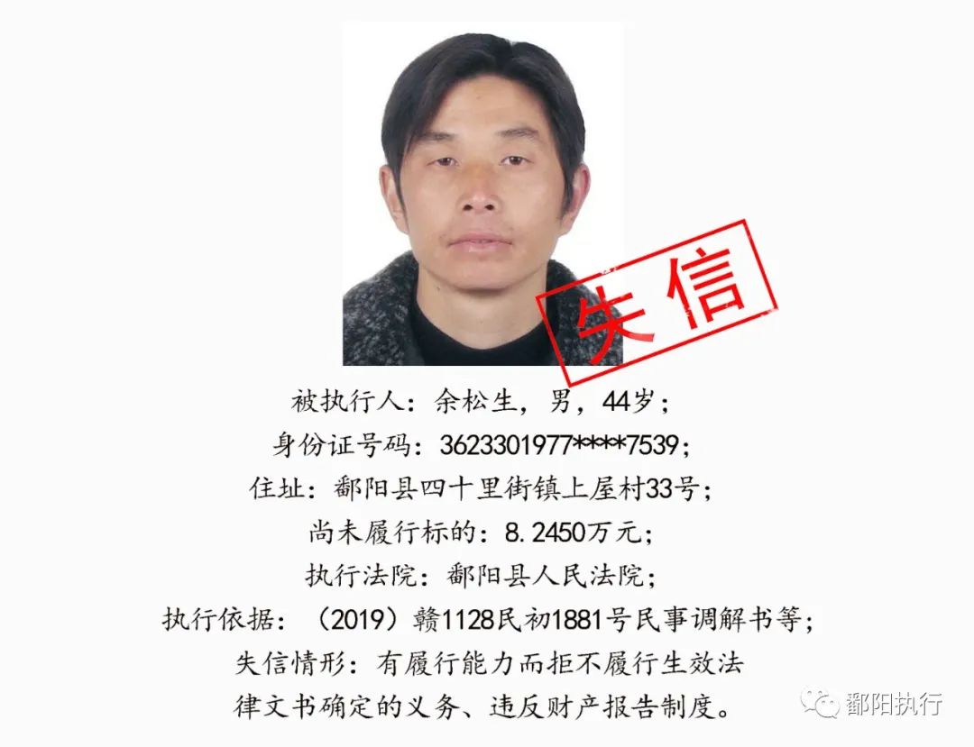 鄱阳县人民法院根据《中华人民共和国民事诉讼法》第二百五十五条之规定,陈兴鑫等24名失信被执行人,拒不履行生效法律文书确定的义务,现将其具体信息公布如下,欢迎广大市民予以监督、举报。