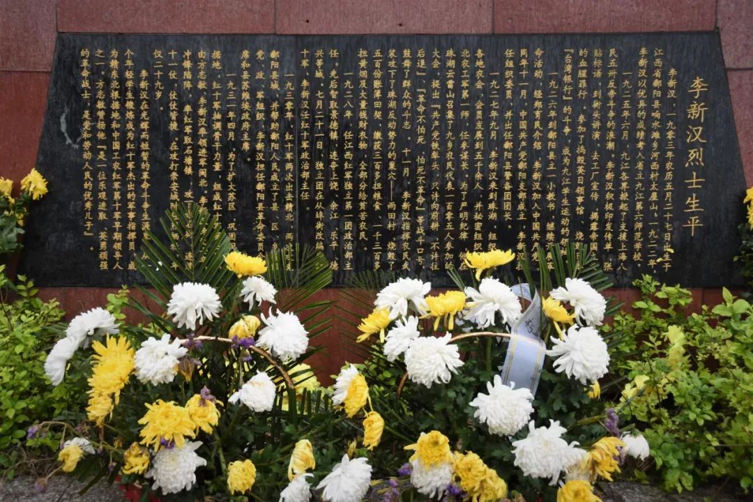 4.参观新汉中学,图书文化志愿者一行瞻仰了李新汉先烈雕像并在红十军旗帜下聆听英雄故事,合影留念。