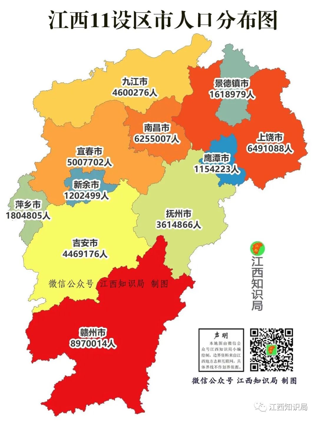 在江西11个设区市中,人口最多和最少的分别是哪个县(市、区)呢?一图看懂: